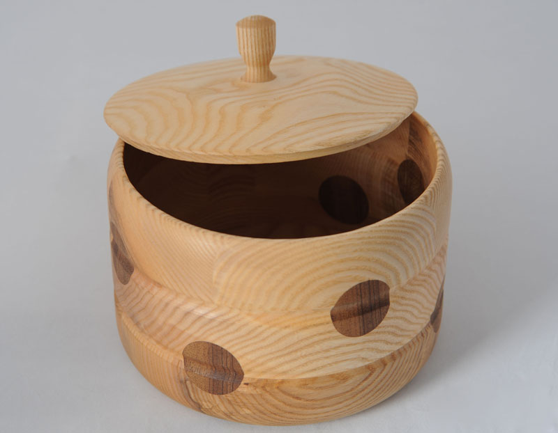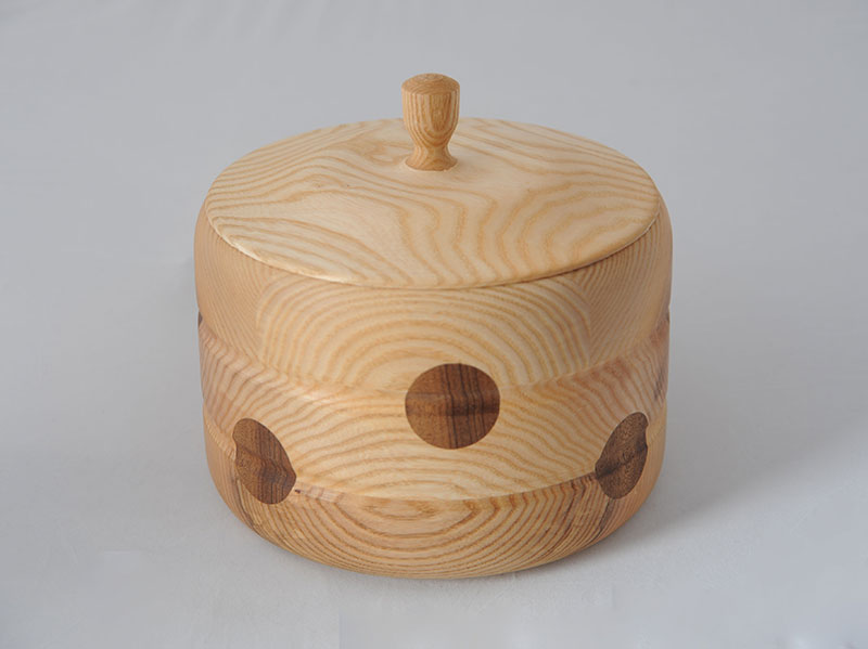 Klijuoto medžio dubenėlis su dangteliu. Gamyboje naudota uosio ir ąžuolo mediena, sutvirtinta aukštos kokybės kleiberit klijais. Pagaminimo būdas ir technologija užtikrina aukštą produkto kokybę ir patikimumą. Dubenėlis impregnuotas žmogaus organizmui nepavojingų linų sėdmenų aliejumi, todėl yra tinkamas laikyti maisto produktus. Dubenėlis yra unikalus, nes gamybos procesas vyksta rankų darbo pagrindu.