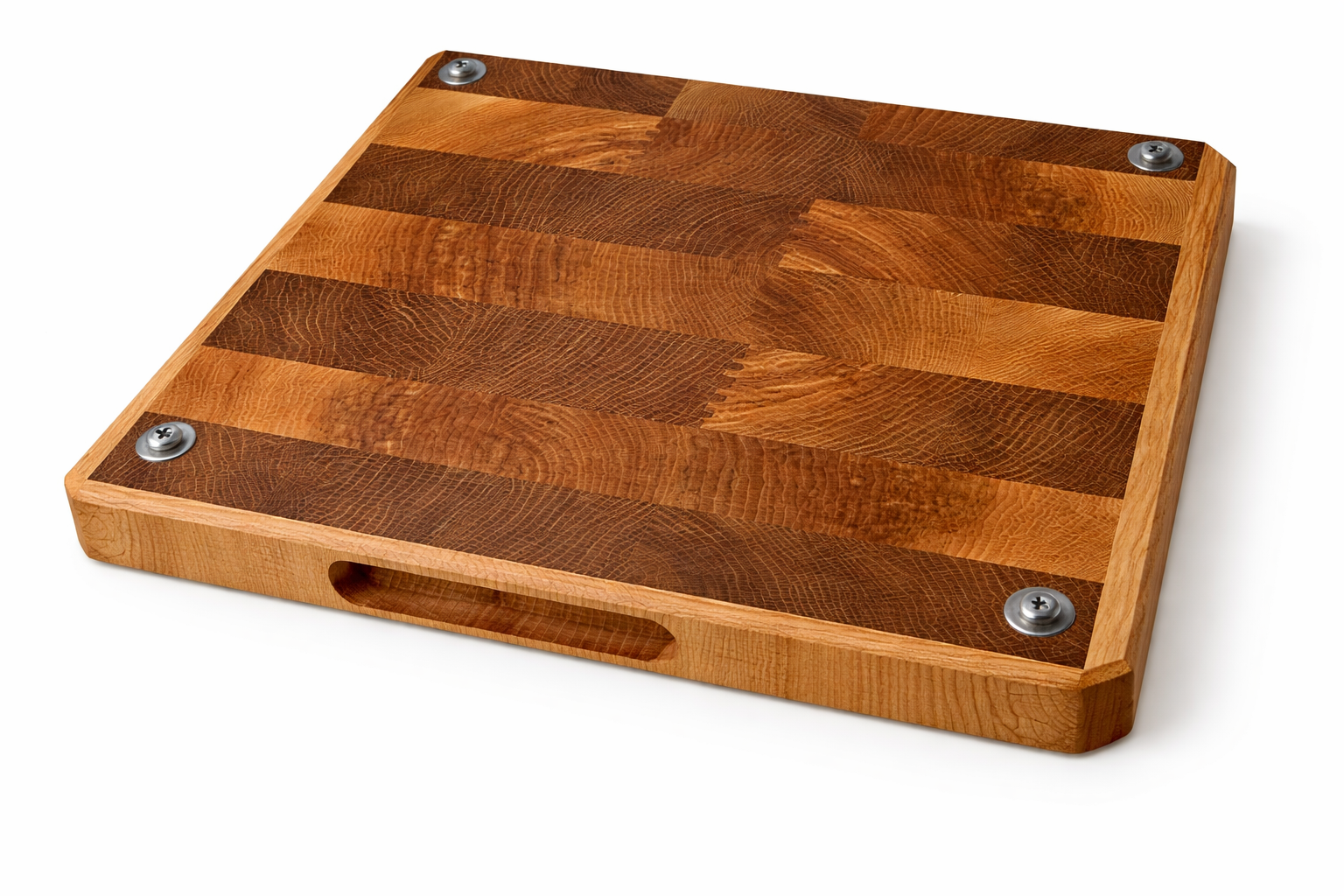 Rankų darbo iš klijuotos uosio ir ąžuolo medienos pagamintos didelės pjaustymo lentelės. Lentelės yra klijuotos iš gryno medžio detalių, kurios sujungtos specialiu raštu, suteikiamos lentelės modernaus dizaino atspalvį. Gamyboje naudoti aukštos kokybės “Kleiberit” klijai. Taip pat lentelės yra impregnuojamos specialiu, žmogaus organizmui nekenksmingu, šalto spaudimo linų sėdmenų aliejumi. Produktas yra tvirtas ir patikimas bei sertifikuotas kaip tinkamas naudoti maisto gamyboje.