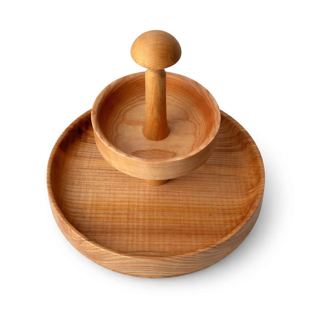 Šis medžio dirbinys pagamintas iš uosio. Stovas skirtas sudėti smulkiems daiktams, maistui, gali būti naudojamas kaip stalo ar interjero puošmena. Dirbinys yra suklijuotas su aukštos kokybės “Kleiberit” klijais ir impregnuotas žmogaus sveikatai nekenksmingu aliejumi.