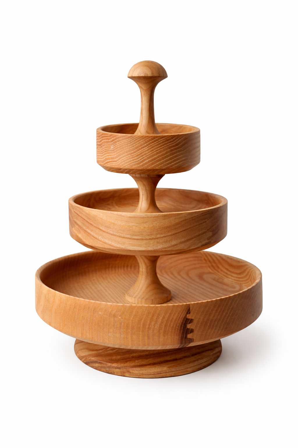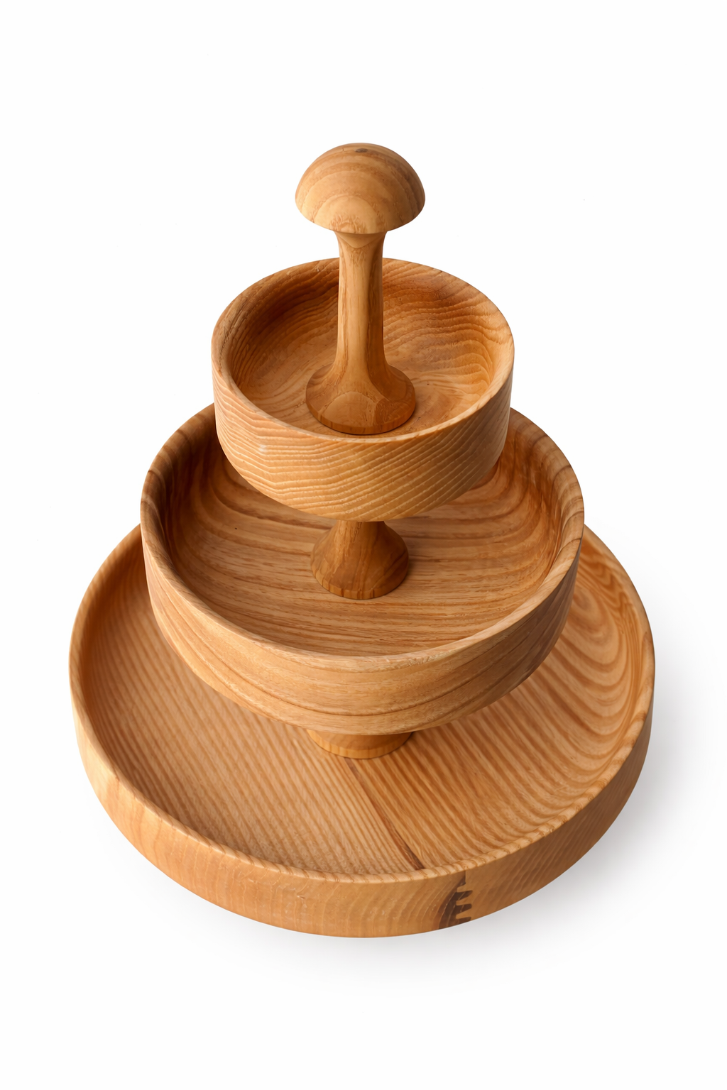 Šis medžio dirbinys iš uosio. Stovas skirtas susidėti smulkiems daiktams, maistui, gali būti naudojamas kaip stalo ar interjero puošmena. Dirbinys yra suklijuotas su aukštos kokybės “Kleiberit” klijais ir impregnuotas žmogaus sveikatai nekenksmingu aliejumi.