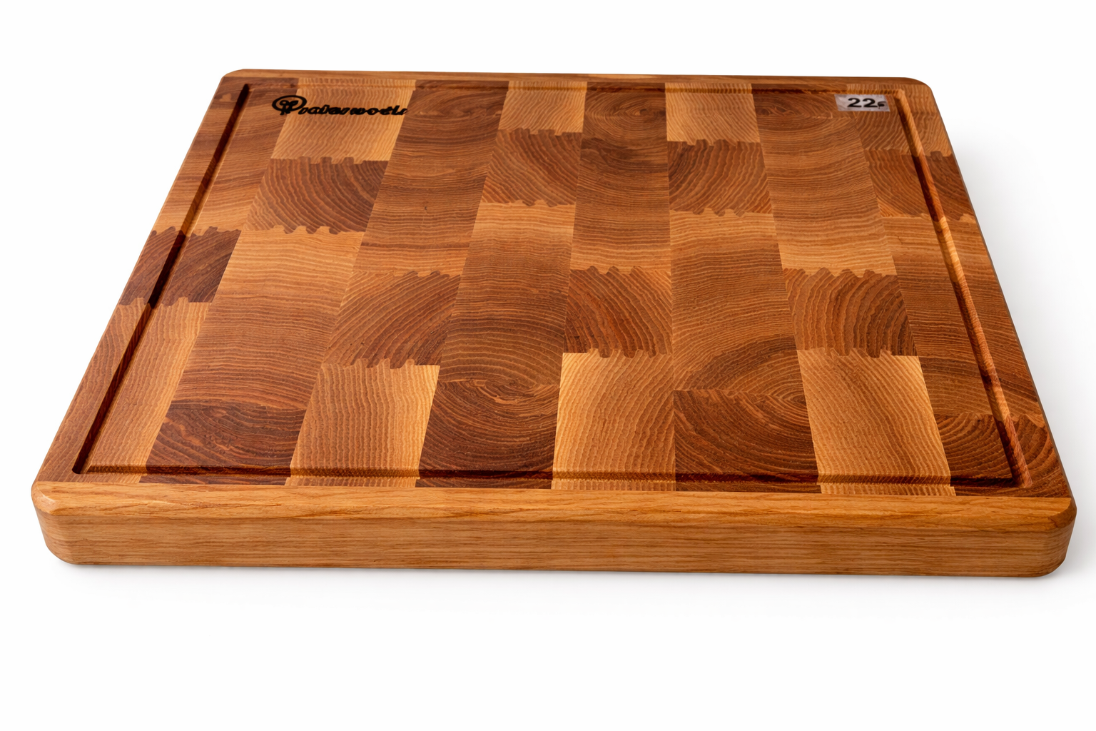 Rankų darbo iš klijuotos uosio ir ąžuolo medienos pagamintos didelės pjaustymo lentelės. Lentelės yra klijuotos iš gryno medžio detalių, kurios sujungtos specialiu raštu, suteikiančios lentelės modernaus dizaino atspalvį. Gamyboje naudoti aukštos kokybės “Kleiberit klijai. Taip pat lentelės yra impregnuojamos specialiu, žmogaus organizmui nekenksmingu, šalto spaudimo linų sėdmenų aliejumi. Produktas yra tvirtas ir patikimas bei sertifikuotas kaip tinkamas naudoti maisto gamyboje.
